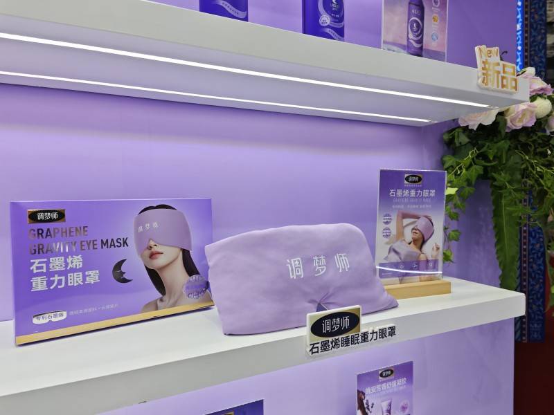 调梦师产品展示区始终围满参观者,石墨烯重力眼罩与旅行睡眠三件套两大核心新品,开展首日就吸引12 家渠道商敲定初步合作意向。