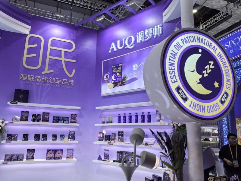 “现代人睡不好,多是节律乱了、情绪绷了。” 调梦师品牌负责人介绍,此次参展主打 “非口服、无依赖、0药物” 的疗愈理念,通过体验舱让参观者直观感受 “视觉遮光 + 嗅觉安神” 的效果——佩戴眼罩的同时,精油晚安贴的香气缓慢释放,不少人体验后当场咨询购买。